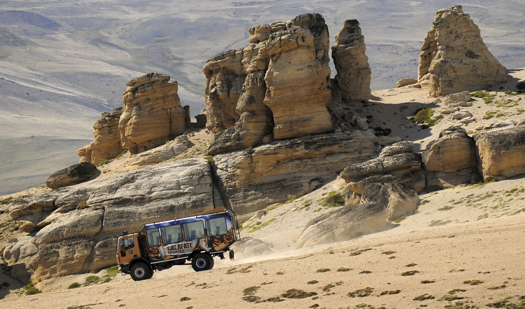 Desde El Calafate, en tan solo minutos, comenzaremos el ascenso al cordón Huyliche, el recorrido comienza transitando por las laderas del Cañadon del Arroyo Calafate, desde donde podremos avistar la fauna autóctona: guanacos, zorros, liebres, loicas, bandurrias, caranchos y halcones entre otras especies. Continuaremos recorriendo el sinuoso camino en ascenso rodeado de bloques erráticos, testigos del poder de la erosión de los glaciares hasta el Primer Balcón, escenario de la Era Cenozoica, datada en 65 millones de años de antigüedad, sobre el lecho de un antiguo mar que se expone en forma de fósiles, sedimento y trozos de vegetación fosilizada.