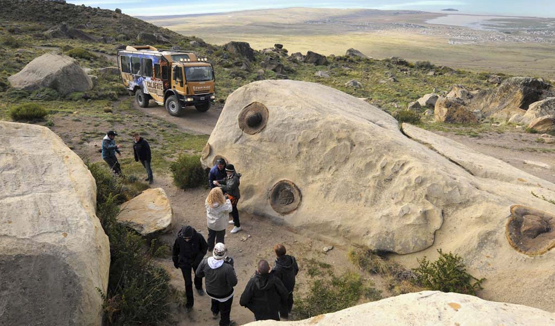 La bajada en 4×4 la emprenderemos por la ladera sur del cerro, donde nos detendremos para realizar una caminata hacia el Laberinto de las Piedras, curiosa formación rocosa producto de la erosión del viento durante miles de años, donde encontraremos fósiles marinos, diversas rocas y piedras particulares y fantásticas cuevas producto de la erosion, sitio fantástico para fotografías inolvidables. *En épocas de deshielo o de fuertes lluvias, esta parada no se realiza*.