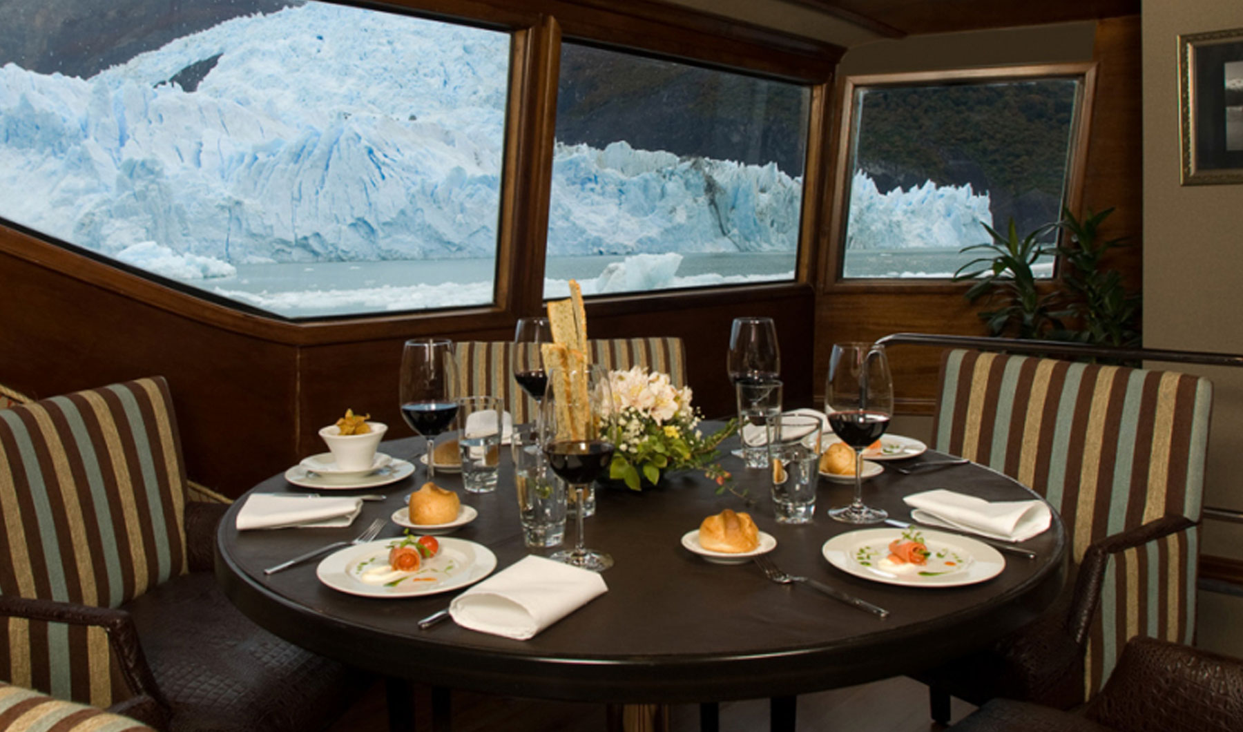 Luego de dos horas de navegación, la sucesión de témpanos de los más variados colores y formas nos anuncia la cercanía del glaciar Upsala. Nos detenemos frente a la barrera de témpanos que momentáneamente impide el ingreso al Canal Upsala, y si las condiciones climáticas lo permiten, admiramos el Glaciar Upsala a la distancia.